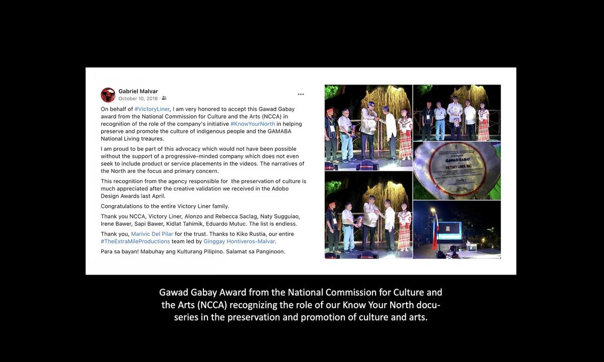Gawad Gabay Award from the National Commission for Culture and the Arts (NCCA) 2018
